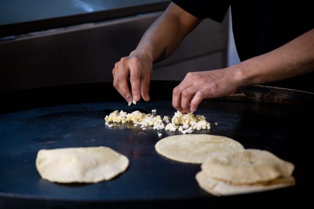 El espacio recupera la estética de fonda sin caer en el estereotipo del circuito Roma-Condesa, sino que a través de piezas cotidianas y locales (como las sillas y mesas tradicionales de las taquerías), recrean su propia versión de un comedor familiar en el que se disfruta cada momento de la estancia.