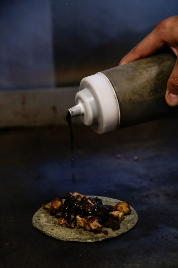 El arte del sazón, combinado con la paciencia del humo y el fuego, da un giro creativo que transforma el taco cotidiano en un auténtico espectro de sabor. Al recorrer su espacio, lxs visitantes se encuentran con un ambiente que desde la sencillez y la originalidad de la madera, el humo y el aroma a carne perfectamente sazonada, crean una atmósfera que invita a detenerse para disfrutar de cada bocado. El cuidado del mínimo detalle se convierte en parte fundamental de la identidad gastronómica de Tizne.